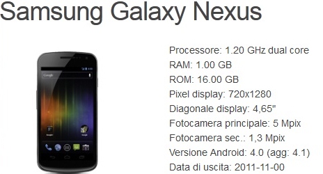 Il Galaxy Nexus è lo smartphone dual core di Samsung prodotto in collaborazione con Google, il quale può vantare la Google Experience, che gli consente di essere sempre aggiornato con l’ultima versione di Android, contrariamente a telefoni più blasonati ma gestiti direttamente dai produttori, esempio HTC One X, Samsung Galaxy S3, ecc.